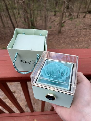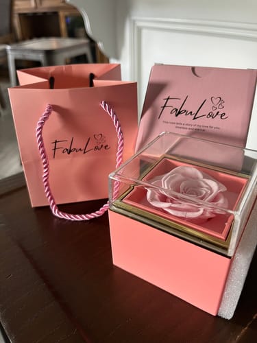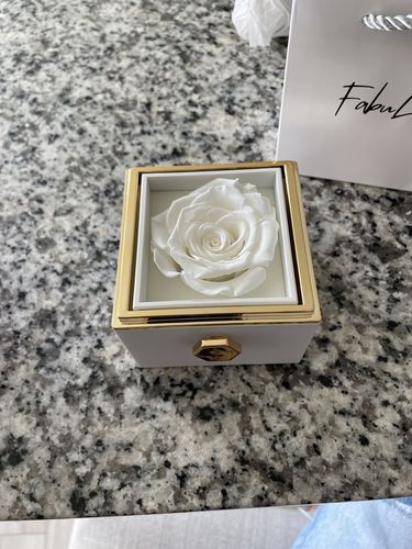 Le collier personnalisé fait vraiment la différence. La rose est toujours parfaite après plusieurs semaines.